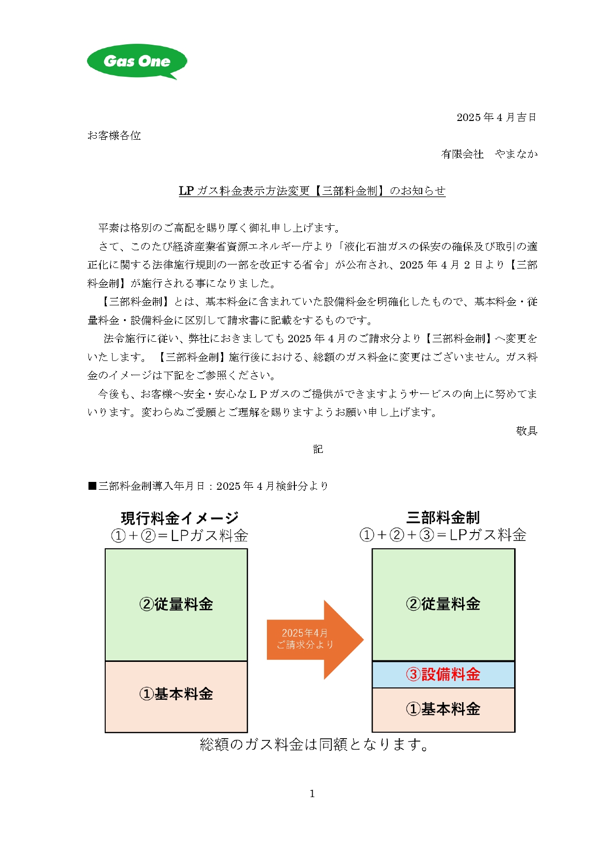 LP ガス料金表示方法変更【三部料金制】のお知らせ